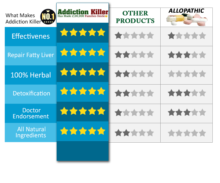 "অ্যাডিকশন কিলার নেশাকে আক্রমণ করে নিঃশেষ করে এবং শরীর থেকে টক্সিকেশনের মাত্রাকে কমিয়ে দেয় যা স্বাভাবিকভাবে নেশাকে দূর করতে সাহায্য করে।"